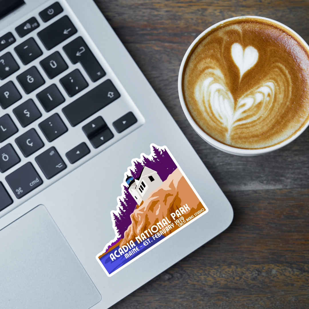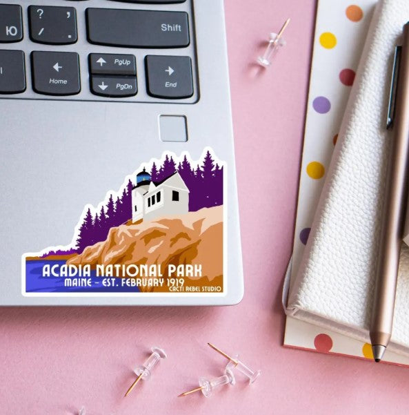 "Acadia National Park Lighthouse" is a fun sticker with a hand drawn view from with in Acadia National Park. This is perfect if you are a national park lover or if you are making your way to visit all the national parks. While you are at it, make it a gift for someone else who loves national parks too.