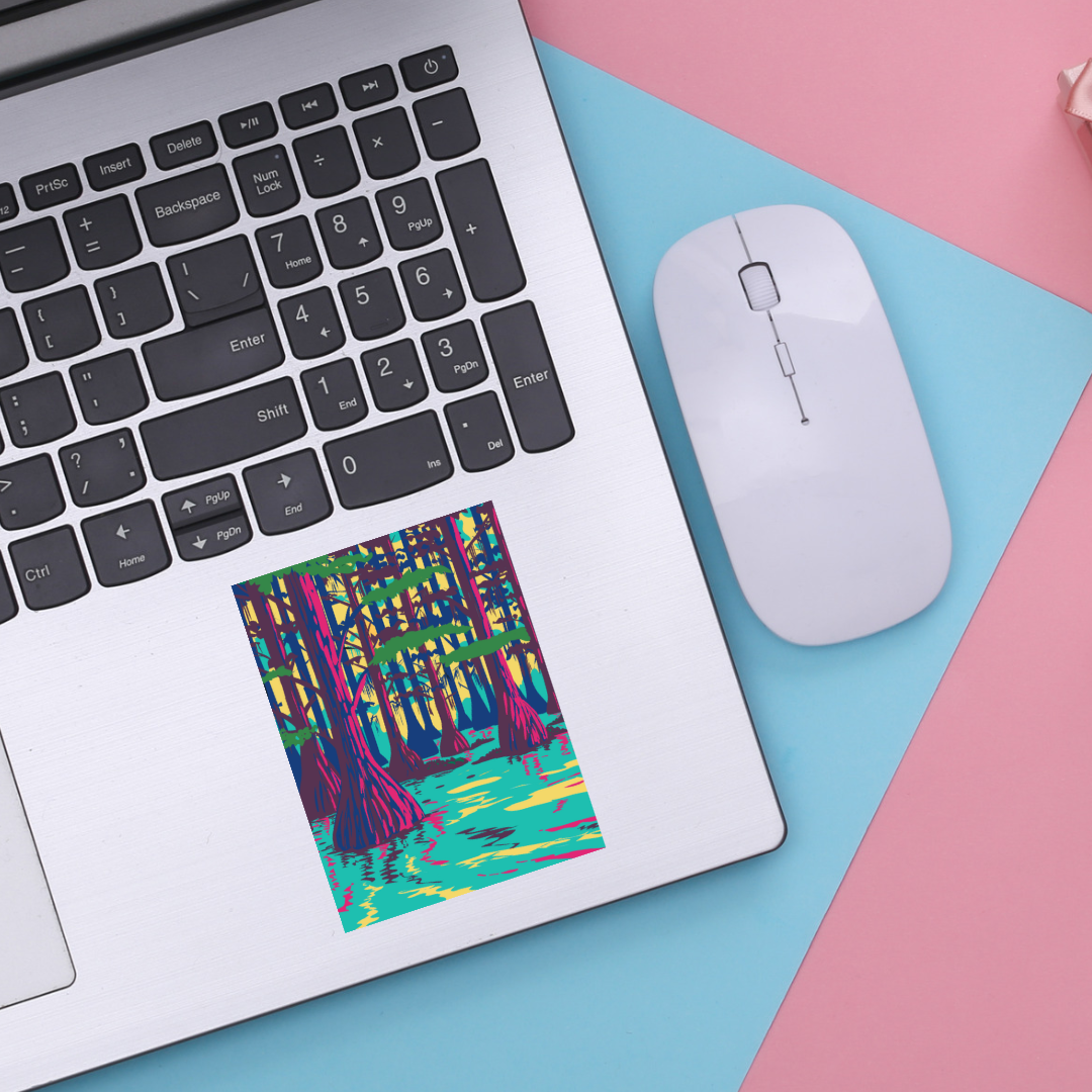 Beautiful sticker depicting Caddo Lake State Park in Texas.