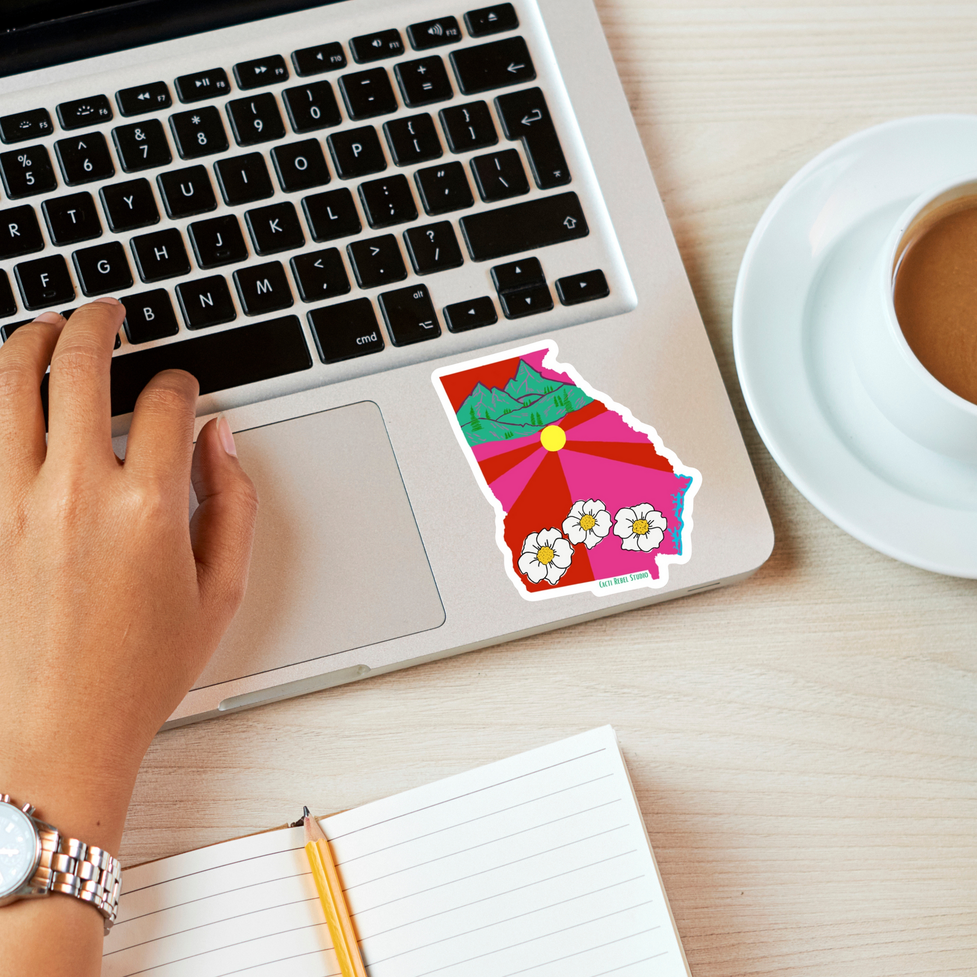 Georgia sticker is a design in response to Hurricane Helene. The clean up and recovery will take time. 100% of the proceeds of this sticker will go to people on the ground effected by this horrible storm to help them recover and rebuild. (I have a design for each state effected).