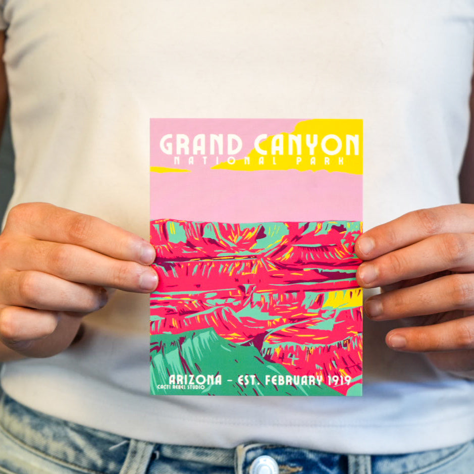 This Grand Canyon National Park postcard features a vivid and bright color palette that captures the awe-inspiring beauty of the iconic landscape. Designed to stand out, it highlights the canyon’s dramatic cliffs and natural splendor with rich, engaging hues. Perfect for sending thoughtful messages or collecting as a vibrant souvenir, this postcard combines expert design with the spirit of adventure and appreciation for nature’s wonders.