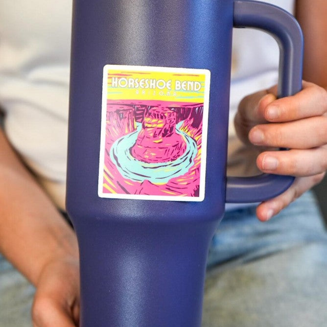 "Horseshoe Bend" is a beautiful hand drawn sticker depicting this amazing spot in Northern Arizona. This is bright color rendering of the area. This sticker is perfect for anyone who loves this amazing spot in the desert, visits the area or calls this part of the country home.