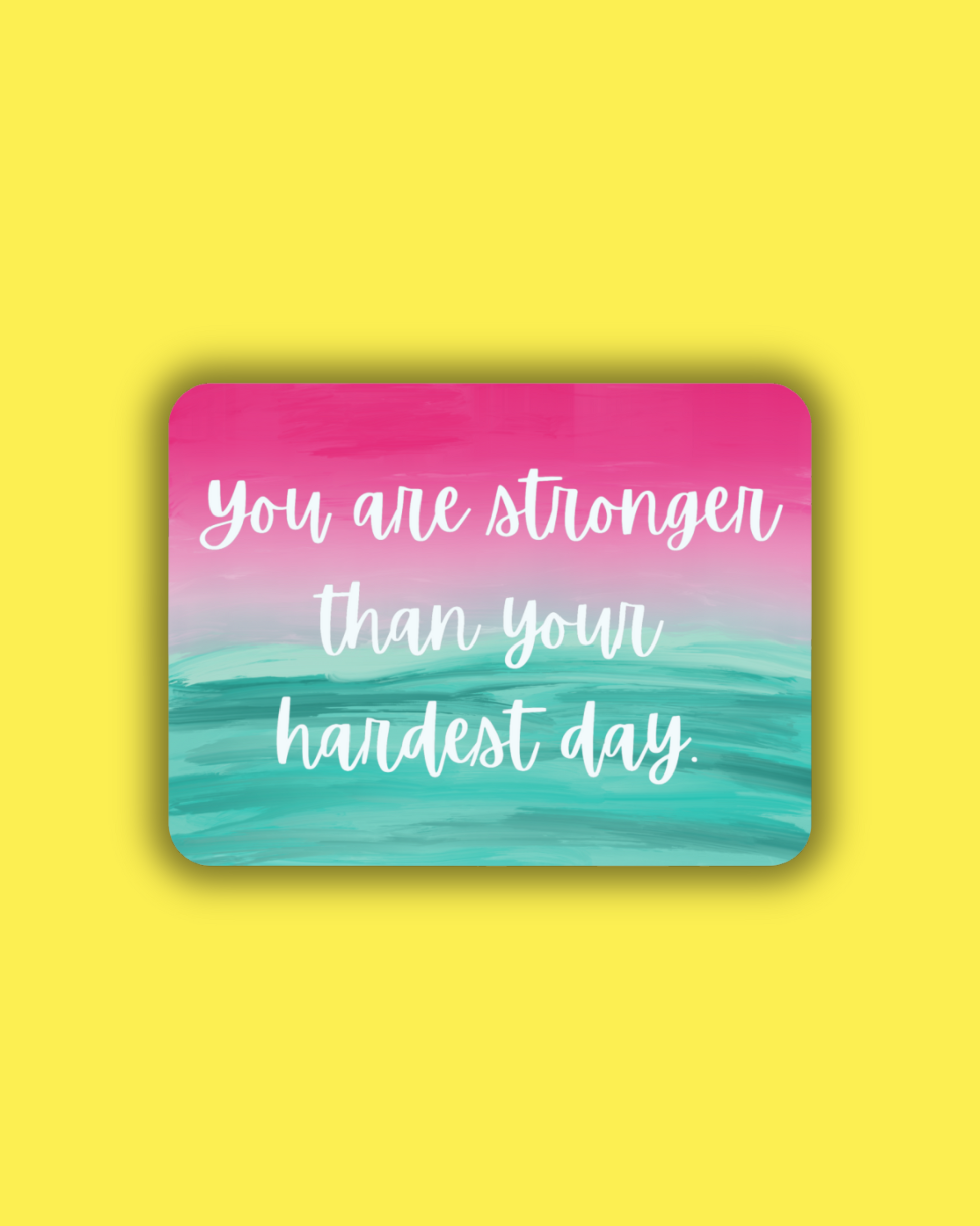 "Stronger" sticker that is perfect to have around you to brighten your hard days. I saw this phrase during the middle of my chemo treatments while battling breast cancer. It inspired me so I had to turn it into a sticker. the background is an acrylic painted ocean scene.